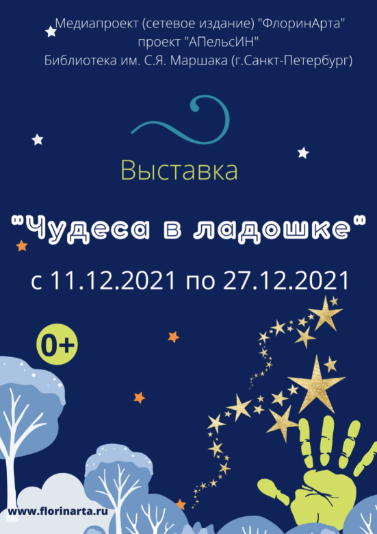 Выставка «Чудеса в ладошке» в рамках медиапроекта (сетевого издания) «ФлоринАрта» и проекта «АПельсИН» объединяет юных и взрослых творцов из разных городов. Она прошла в двух форматах — очном и онлайн.