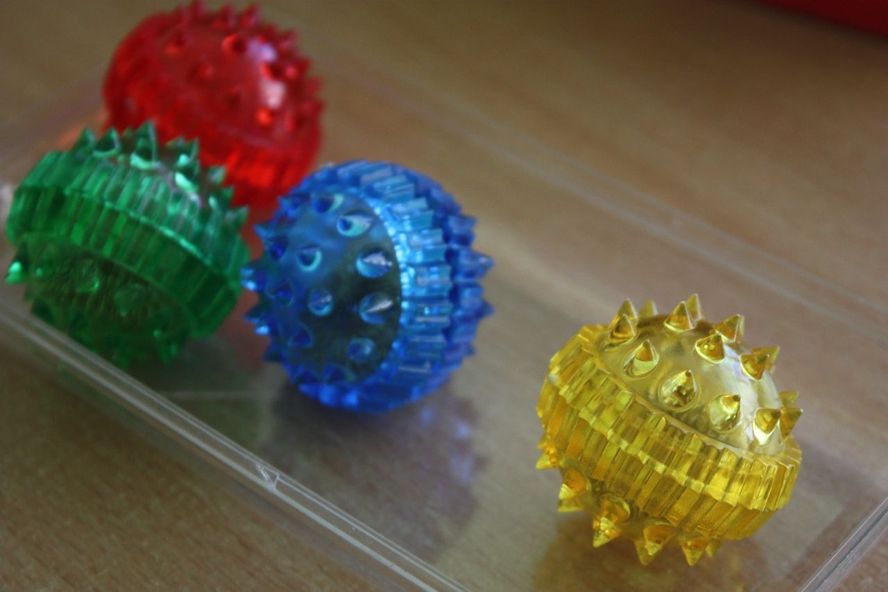 Су-джок шарик — это особой конструкции шарик с шипами и двумя специальными металлическими кольцами (пружинами) внутри. С его помощью детям обычно нравится массировать пальцы и ладошки, что оказывает благотворное влияние на весь организм. Таким образом, получается способствовать развитию познавательной и эмоционально-волевой сфер ребенка, а также снятию психоэмоционального напряжения.