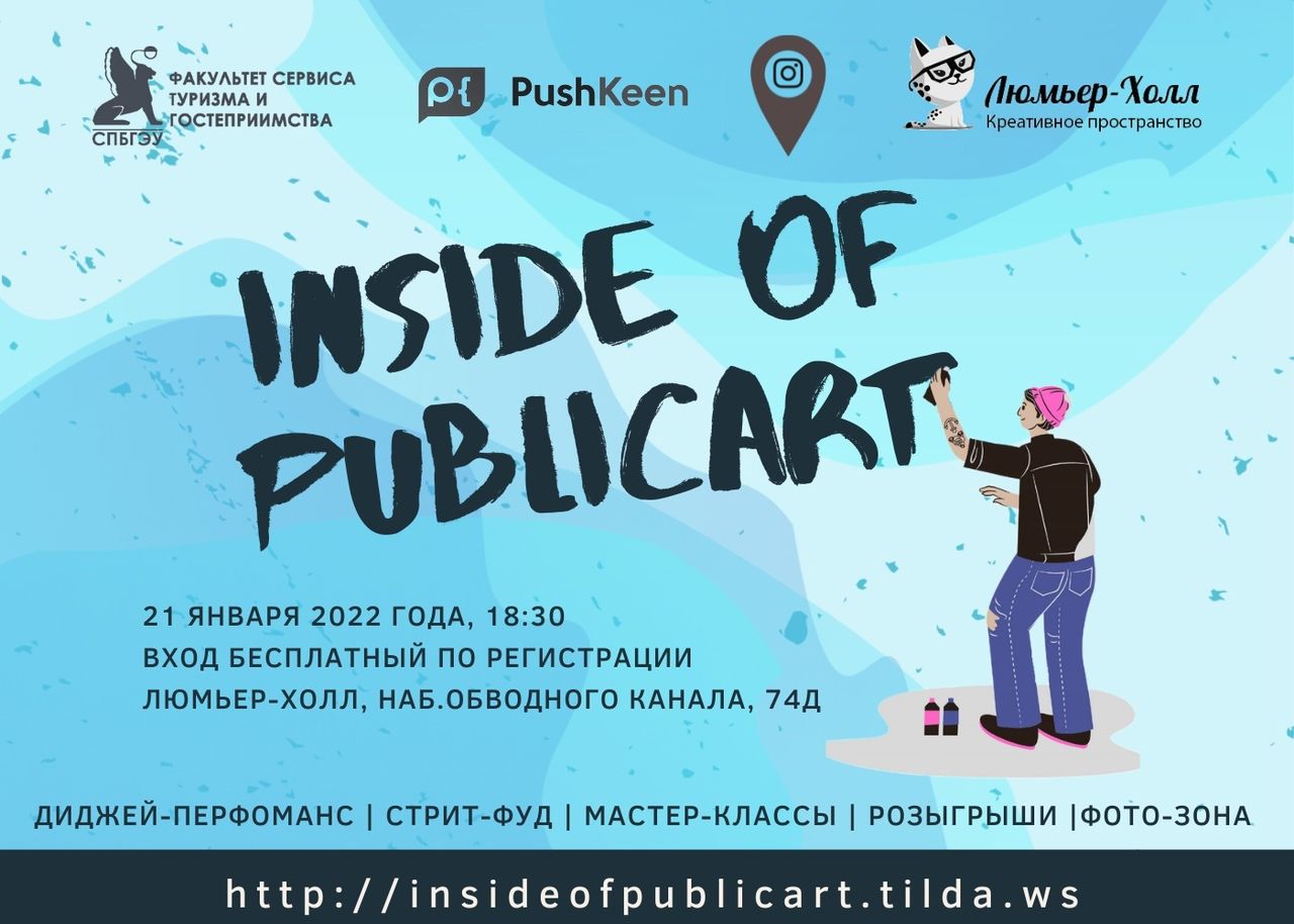 АРТ-ВЕЧЕРИНКА «INSIDE OF PUBLIC ART» состоится уже 21 ЯНВАРЯ в 18:30 в Люмьер — Холле, наб. Обводного канала, 74д Вы погрузитесь в атмосферу стрит-арт искусства!
