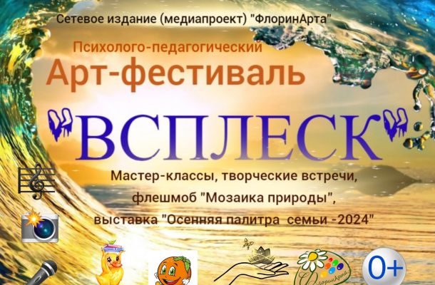 Ежегодный психолого-педагогический арт-фестиваль «ВСПЛЕСК» от сетевого издания (медиапроекта) «ФлоринАрта» осуществлял свою деятельность с 20 по 30 ноября 2024 года.В программу фестиваля вошли тематические мастер-классы и публикации авторских методических разработок от специалистов, активно работающих в различных образовательных учреждениях; представление творческих работ из области культуры и искусства, а также состоялся флешмоб «Мозаика природы» в рамках рубрики «Зелёная гостиная». […]