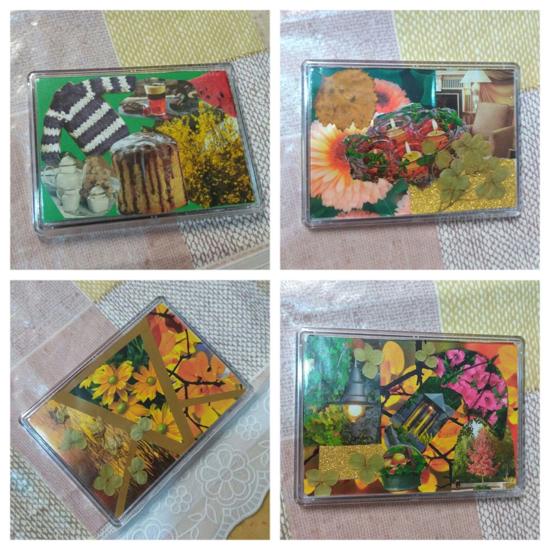 Из практики: в данном фотообзоре представлены работы участников взрослой группы на тему «Мои ресурсы». Основными сюжетами для магнитов-коллажей на данную тему стали домашний уют, прогулки, природа.