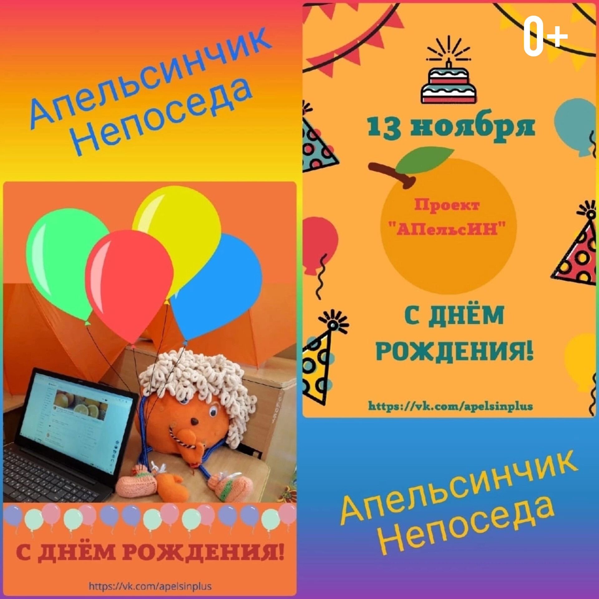Сегодня наши друзья, психолого-педагогический проект «АПельсИН» празднует день рождения своего главного героя — апельсинчика Непоседы!