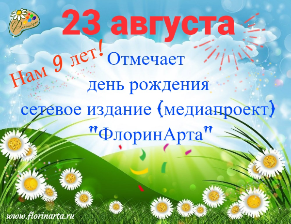 23 августа для нашего сетевого издания (медиапроекта) «ФлоринАрта» красный день календаря. Мы отмечаем день рождения, в этот раз свое 9-летие!