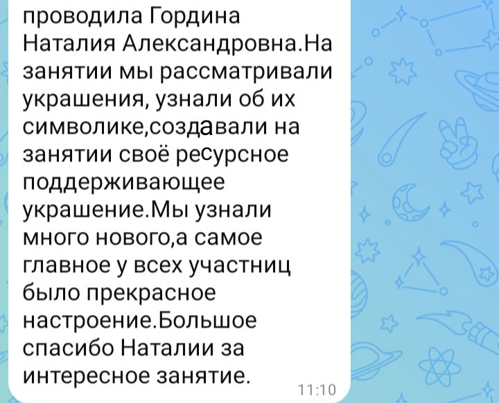 В рамках психолого-педагогического Арт-фестиваля «ВСПЛЕСК» 23 октября 2025 года состоялся групповой арт-тренинг «Украшения как символы нашей внутренней силы».