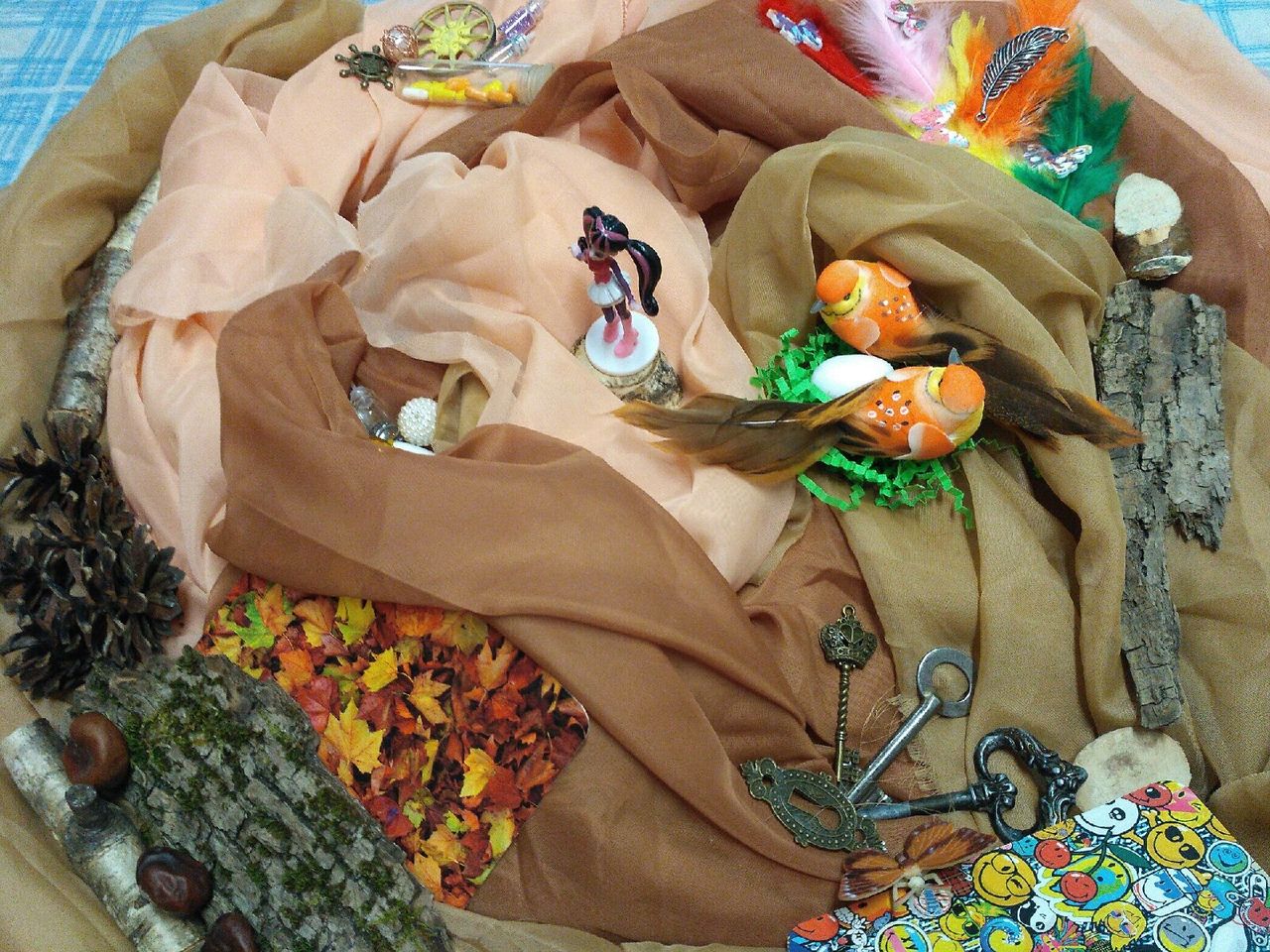 Можно использовать предметы, которые найдутся в помещении: изобразительные материалы, бумага, книги, предметы декора.