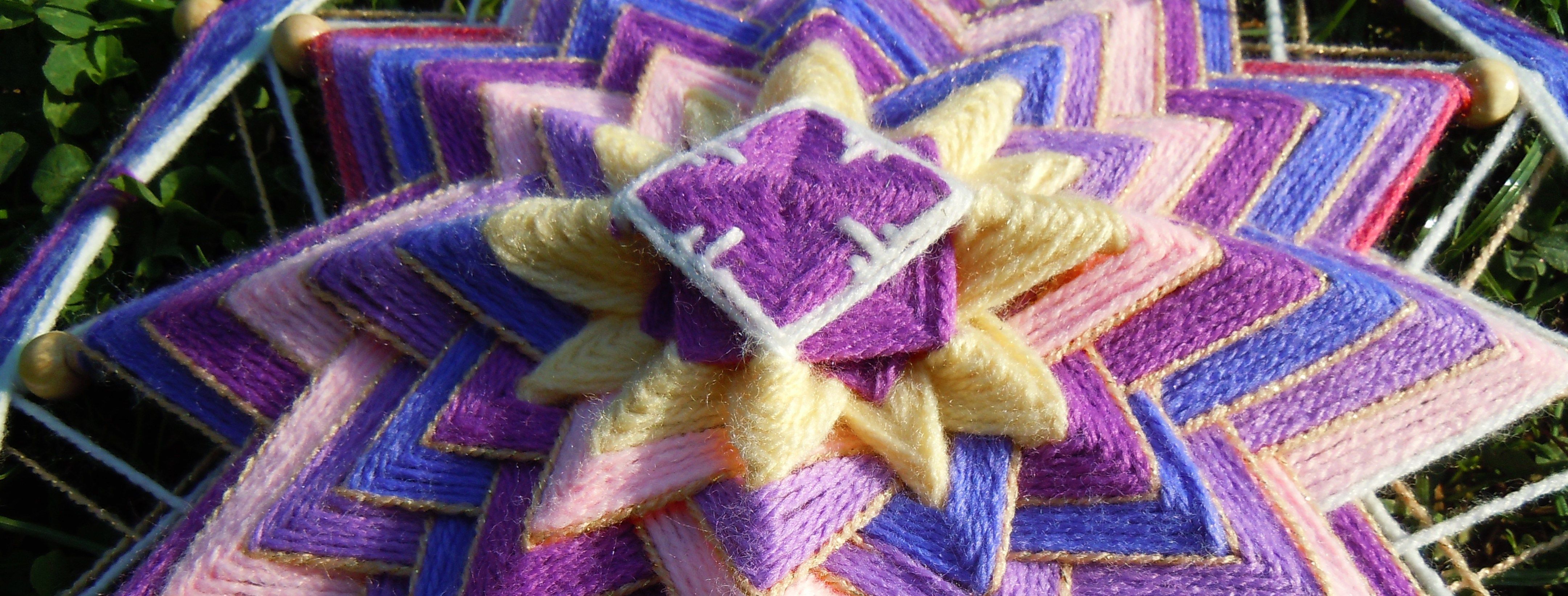 Найдя в интернете урок, впервые попробовала выполнить такое плетение. Я слышала, что не стоит думать о чем-то плохом, когда создаешь ловцы снов или мандалы, поэтому это стало для меня отличным тренингом по позитивному мышлению. Такой вид рукоделия стал лучшей медитацией, да и наблюдать, как по деревянным палочкам нарастают различные фигуры и цвета очень приятно.