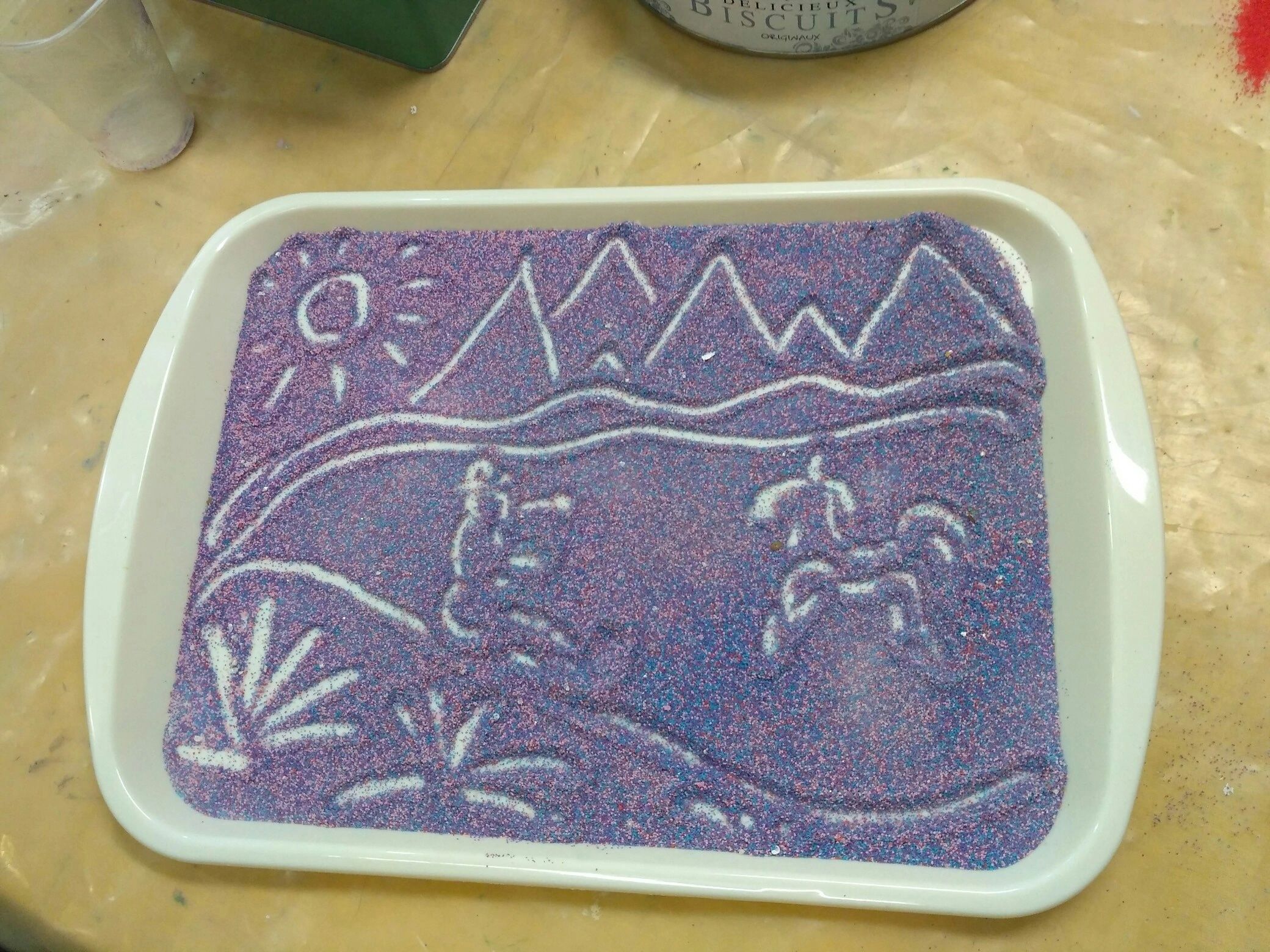 5. В завершение, предложите каждому участнику создать свою картину на песке, образ, навеянный музыкой.
