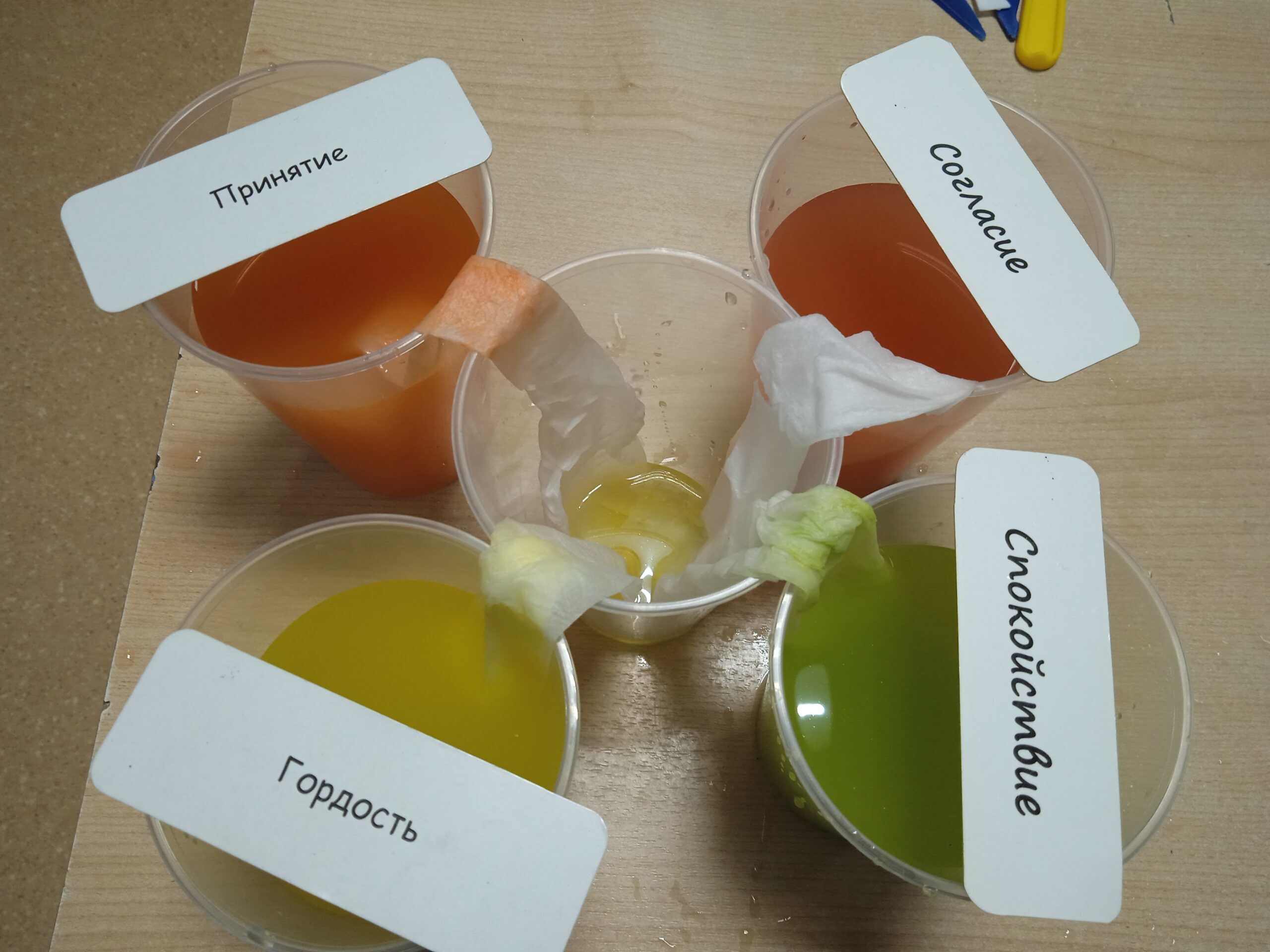 2) Подготовьте стаканчики по числу выбранных эмоций и состояний.