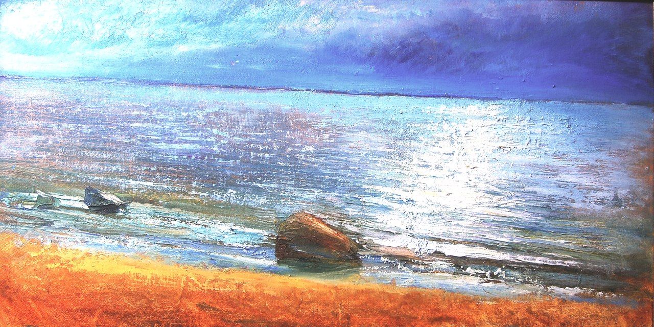 В публикации представлена картина художника Сергея Опульса «Репинский камень».