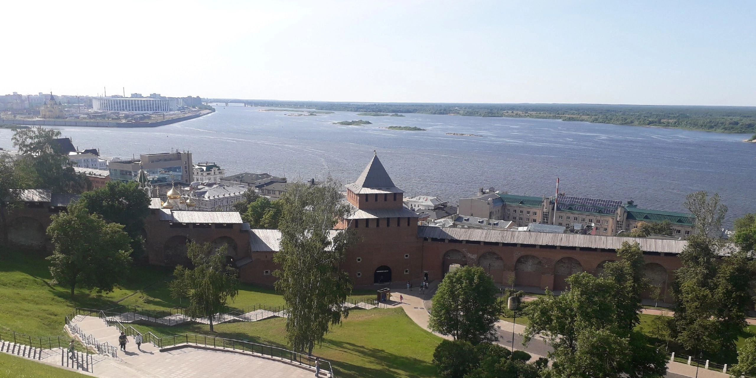 Нередко одной из главных достопримечательностей городов становится та или иная «смотровая площадка», где можно полюбоваться красотой городского пейзажа с высоты птичьего полёта. Такой возможностью я всегда стараюсь воспользоваться, так как очень люблю ощущение высоты. Не удивительно, что и всем известный аттракцион «Колесо обозрения» — мой главный «фаворит». Нижний Новгород, ключевое место нашего июньского путешествия, с высоты птичьего полёта мы посмотрели не только с «Колеса обозрения», но и преодолев 442 ступени знаменитой Чкаловской лестницы в историческом центре Нижнего Новгорода, соединяющая Верхне-Волжскую и Нижне-Волжскую набережные. В такие моменты как никогда радуешься солнечной погоде, голубому небу — от красоты увиденного буквально захватывает дух и мысленно уже сам паришь как птица.