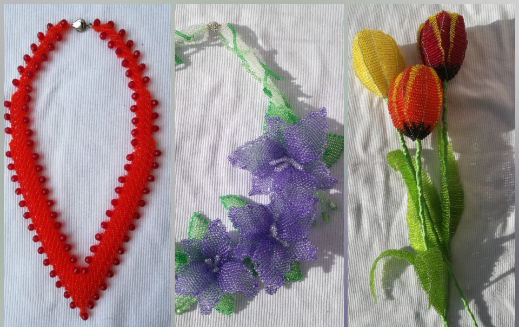 В какой-то момент я стала по книгам самостоятельно развиваться в бисероплетении, благо, что мама покупала мне много бисера. Но потом внезапно прошла мода на бисер и в нашем родном городе Кунгуре невозможно было купить такой материал. Тогда мне начали привозить его из Перми. Я начала плести украшения, мне стали заказывать браслеты с именем мои одноклассницы. Классный руководитель заметила мое творческое увлечение и стала меня продвигать в различные конкурсы школы от нашего класса, за это я получала благодарности и памятные подарки. После окончания школы, тяга к творчеству не утихла. Мама мне предложила учиться в художественном колледже, куда я в дальнейшем и поступила. Правда, отделение, связанное со скульптурой мне не подошло, я не чувствовала этот вид искусства. Тем ни менее, художественный колледж был закончен.