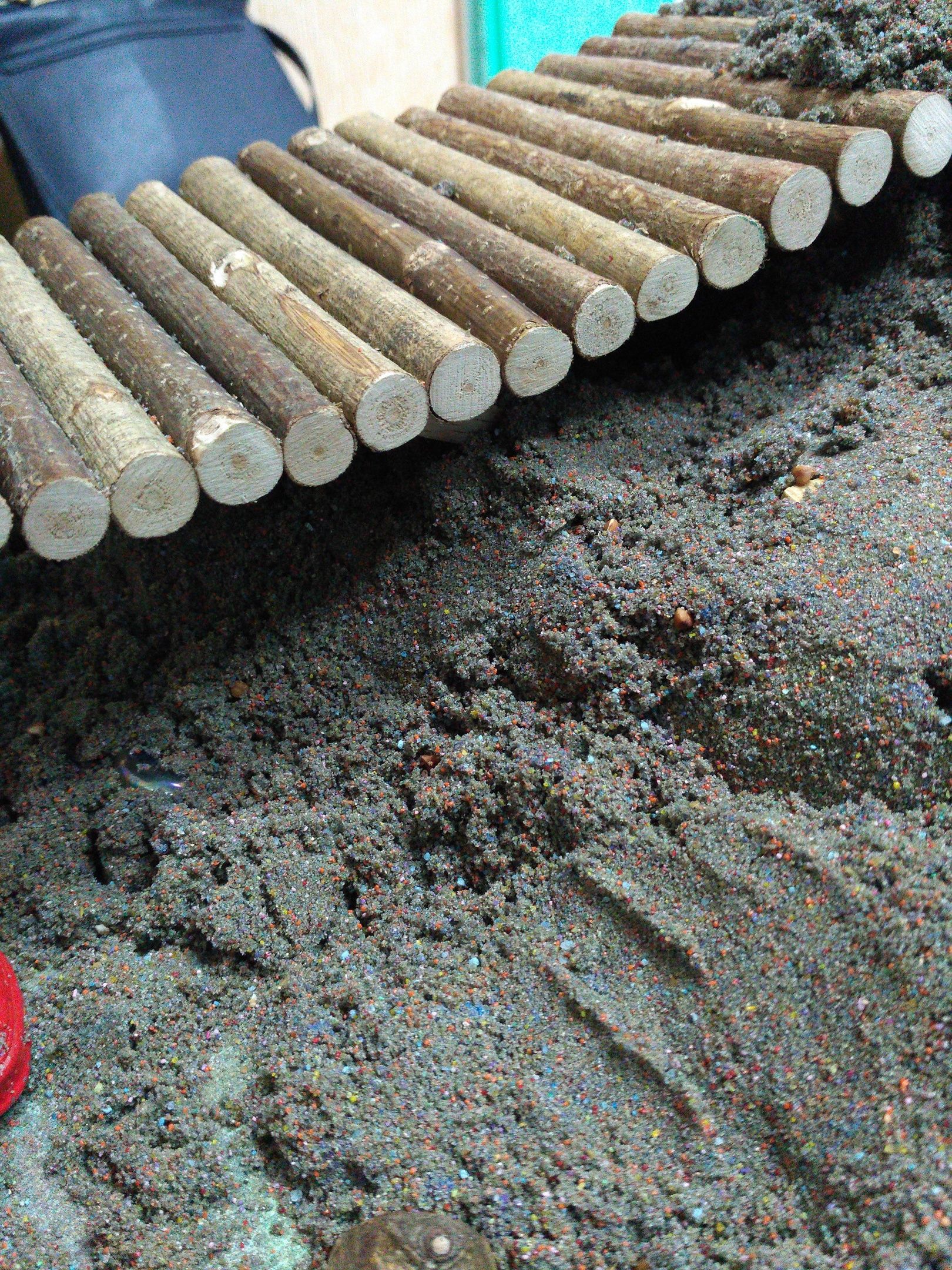 Опилки можно использовать при создании мандал, инсталляций, эко-троп, а также для различных тактильных игр.