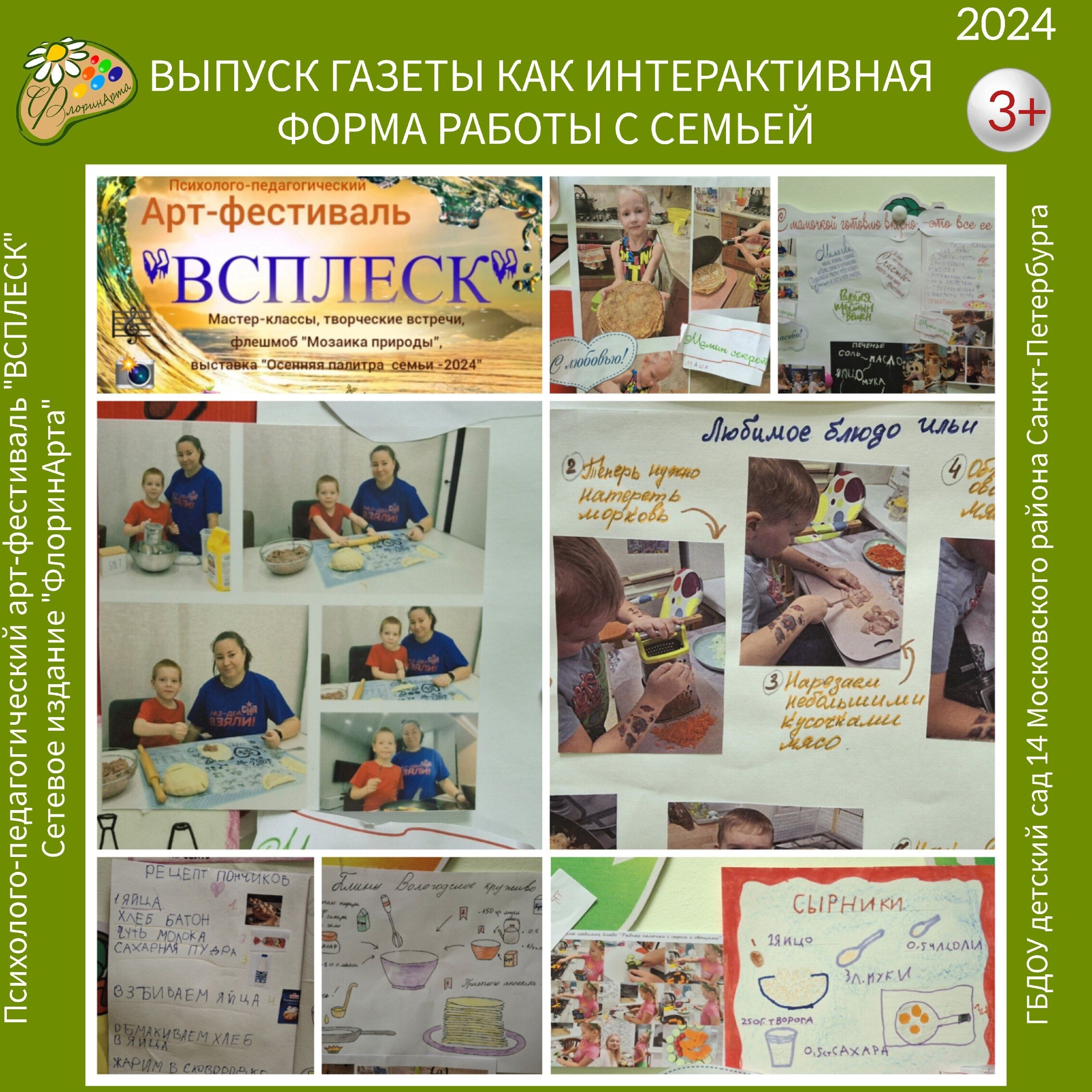 В рамках психолого-педагогического арт-фестиваля «ВСПЛЕСК» воспитателем Федоровой Ольгой Юрьевной представлен авторский материал по теме «Выпуск газеты как интерактивная форма работы с семьей».