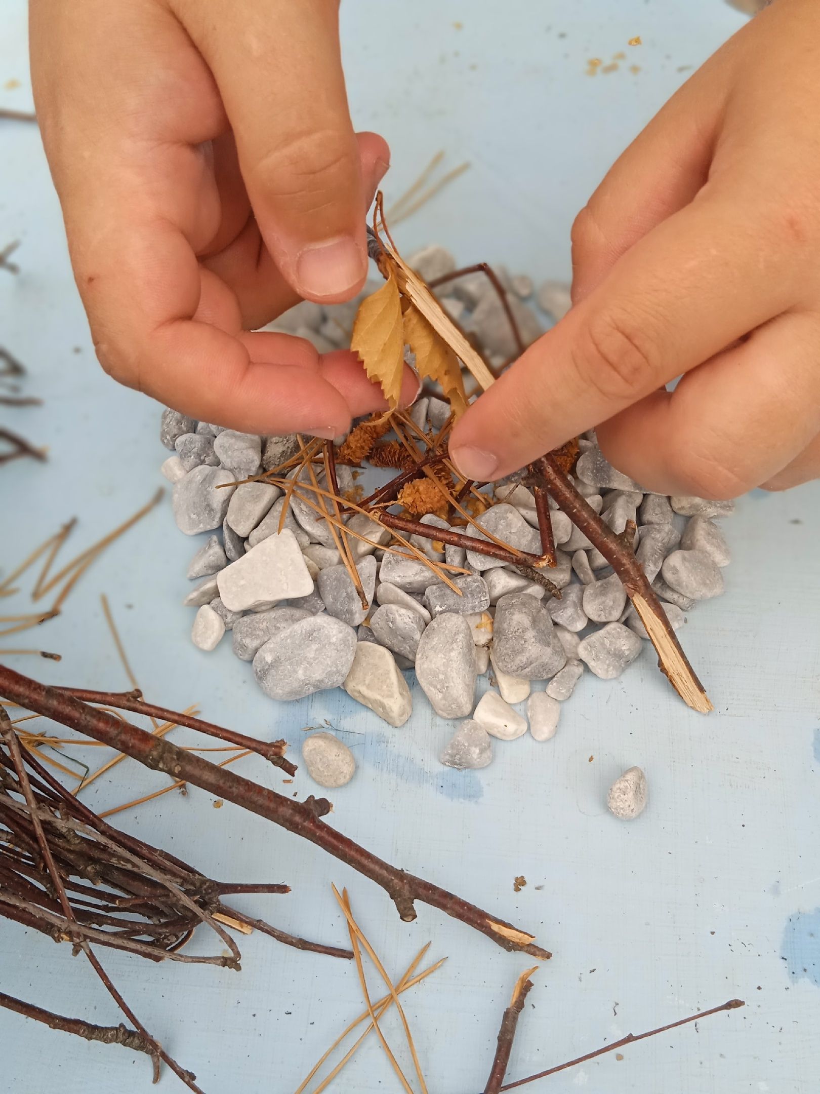 Описание:отправляясь на прогулку на природу (в лес, на реку, в парк, на дачу и тд), соберите те природные материалы, которые вас привлекают (стараясь как можно меньше нанести вред природе). Это могут быть камни, ракушки, опавшие листья и ветки, шишки, желуди, каштаны, песок, кора поваленных деревьев и др. Возможно у вас дома уже есть природные материалы, их также можно использовать.
