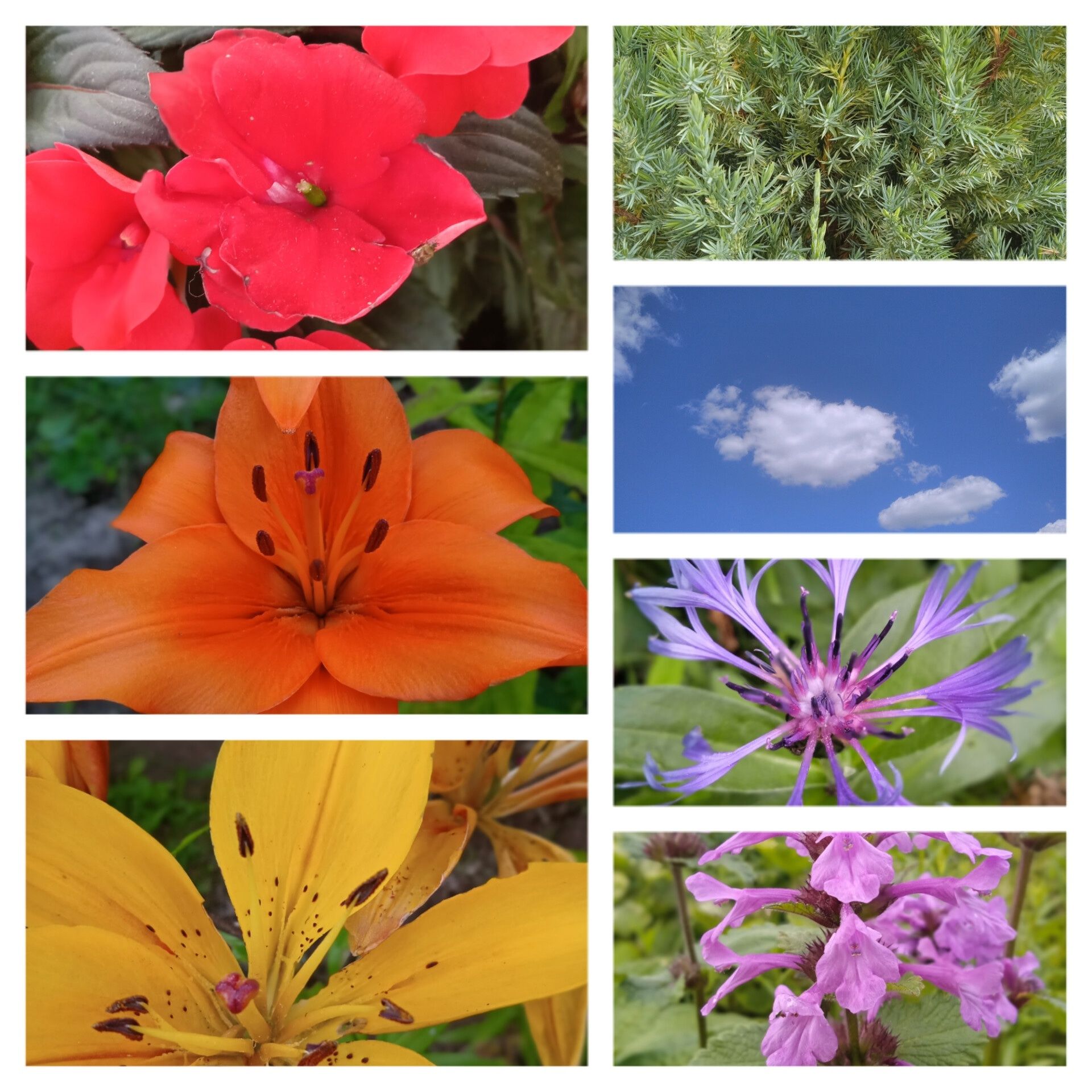 Природа дарит нам множество цветов и оттенков. Если присмотреться, то на земле, на кустах и деревьях можно найти целую радугу. Совершая прогулку, осмотритесь вокруг. Найдите те самые семь цветов на клумбе у дома, в парке, в лесу, на выставке цветов, в поле, на даче… Сфотографируйте свою собственную радугу, а затем создайте радужный фотоколлаж.