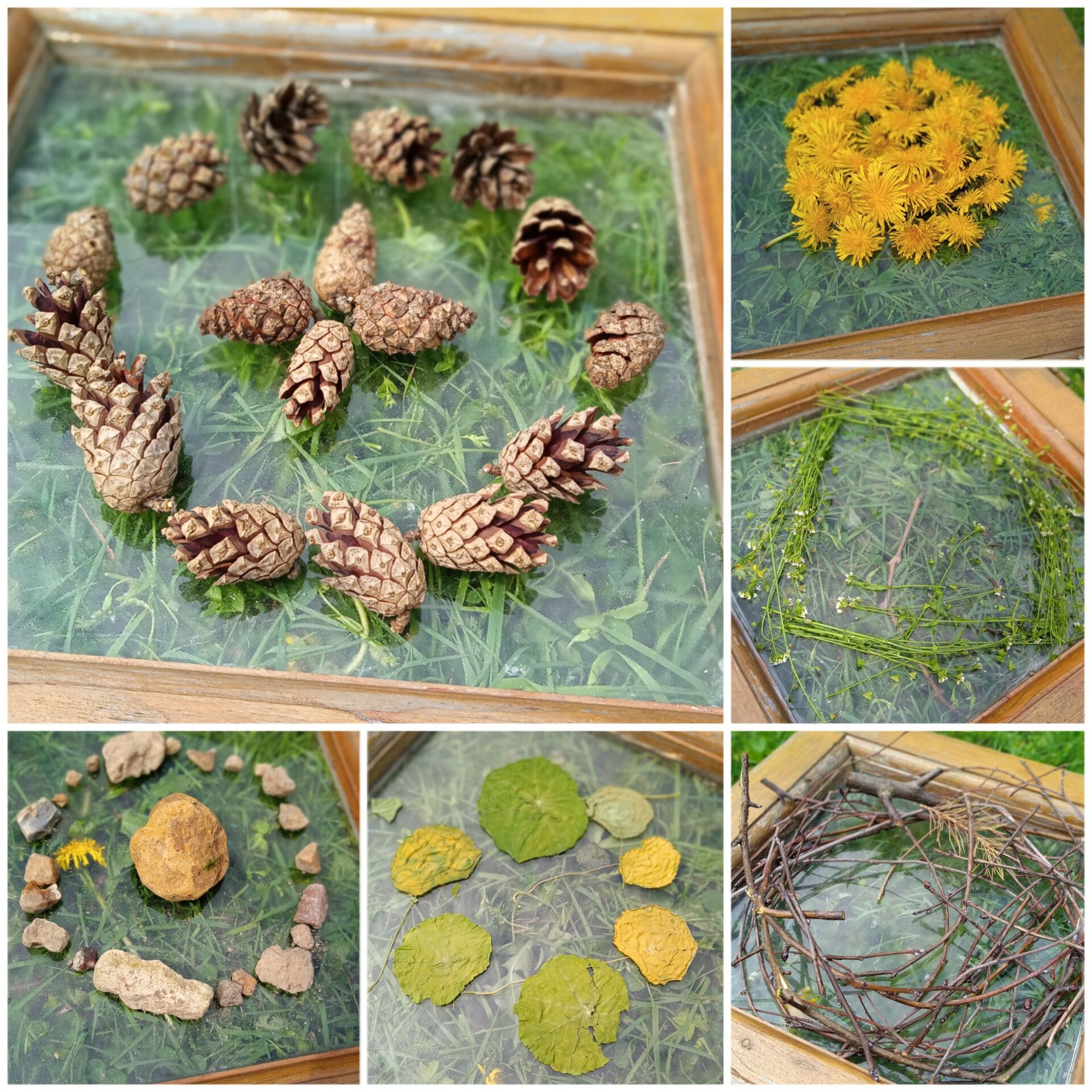 Попробуйте также создать свою природную мандалу, а может и целую галерею, как у нас. Материалом могут служить кора поваленных деревьев, шишки, мох, старые ветки, камни, песок и др. На даче это могут быть также сорняки, которые вы убираете с грядок (цветущие, либо травянистые), а также цветы или лепестки, опадающие с кустарников и деревьев.