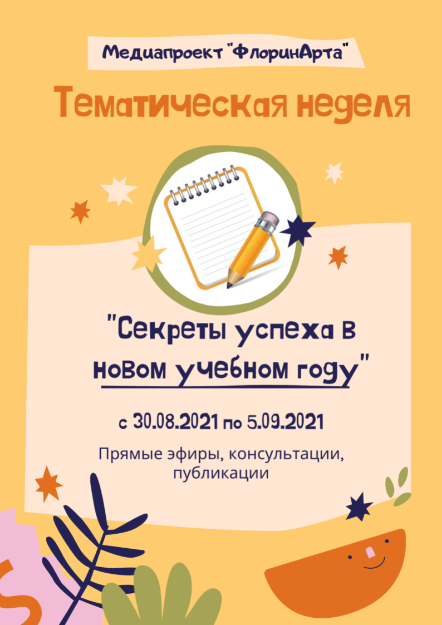 Дорогие участники и гости нашего медиапроекта «ФлоринАрта»!Мы подводим итоги тематической недели «Секреты успеха в новом учебном году», которая проходила в рамках медиапроекта