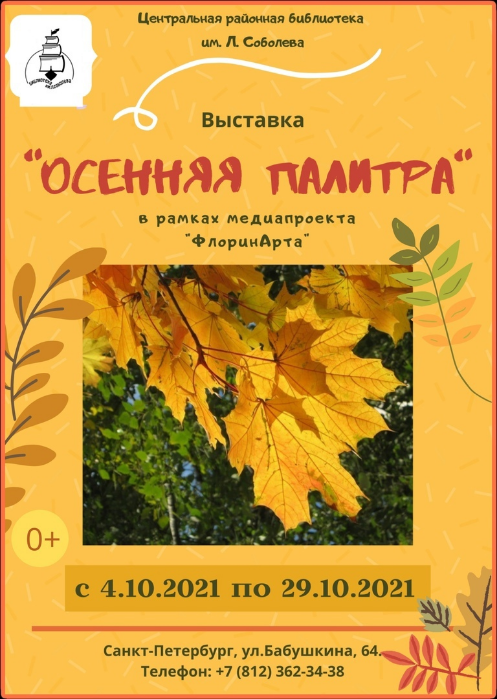 9 октября 2021 года в рамках медиапроекта «ФлоринАрта» состоялось торжественное открытие выставки «Осенняя палитра» в центральной районной библиотеке им. Леонида Соболева.