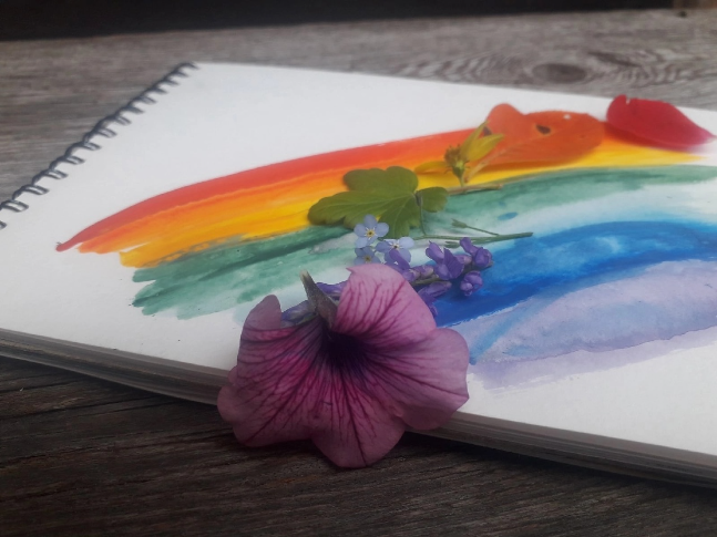 Примечание: При соответствующем желании можно создать цветочную радугу без рисунка, сделать её на чистом альбомном листе.