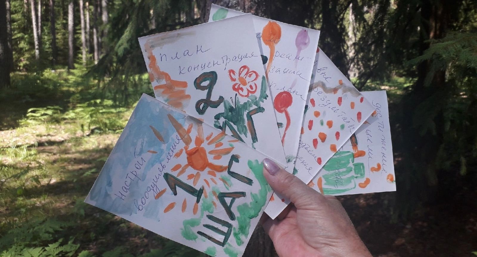 — Упражнение лучше всего провести на свежем воздухе, особенно хорошо подойдёт для этого лесная прогулка. Подготовьте удобные принадлежности для рисования, а также пронумеруйте пять альбомных листов. Каждый альбомный лист будет соответствовать одному шагу.