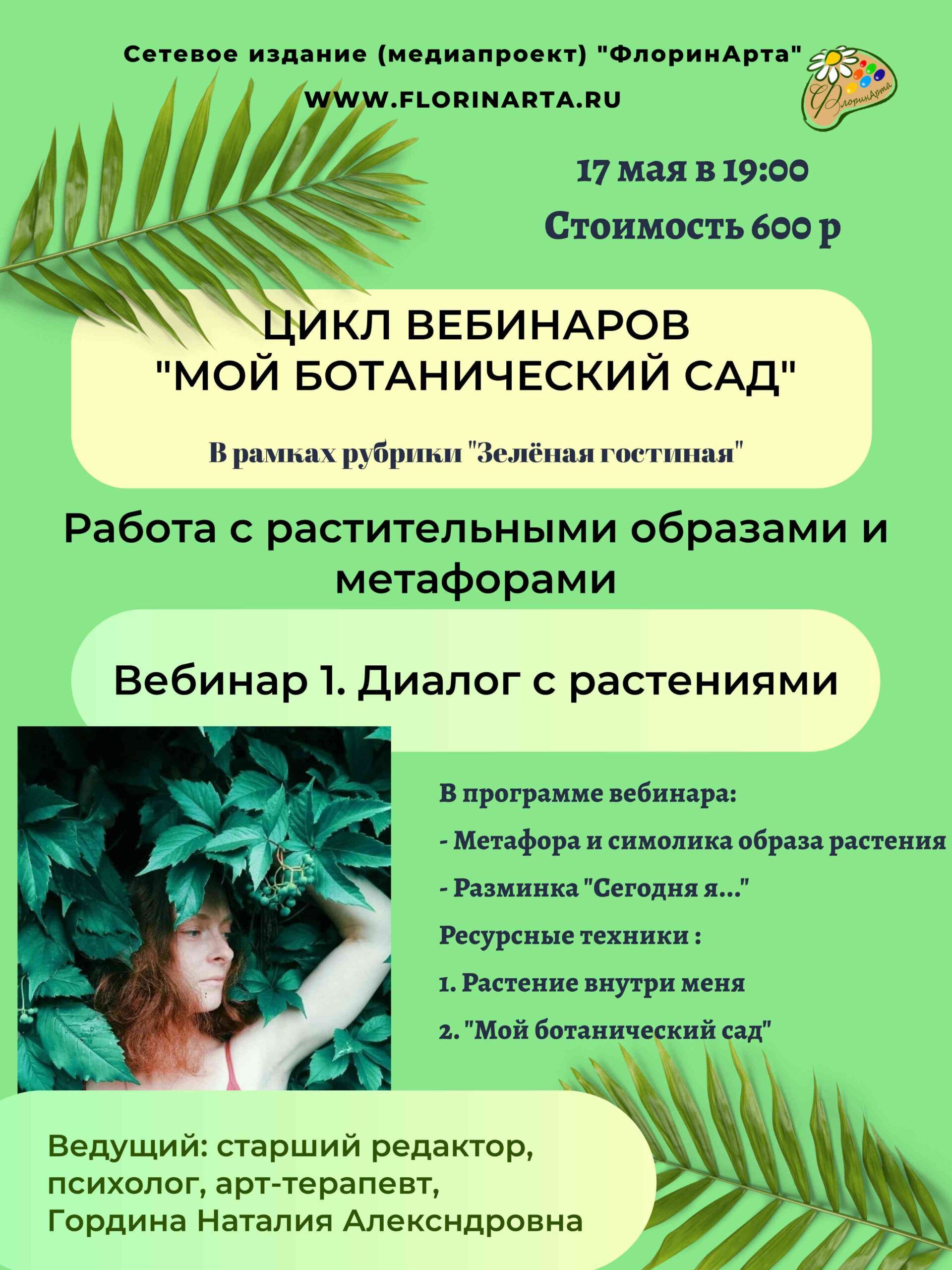 Вебинар состоится в рамках сетевого издания (медиапроекта) «ФлоринАрта» , онлайн, 17 мая в 19:00, на платформе ZOOM.