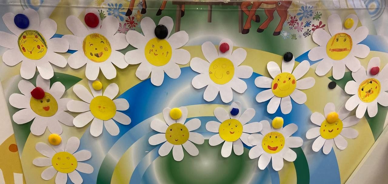 А ещё дети ощутили себя не просто художниками ,а волшебниками. Им удалось изобразить весёлую, радостную ромашку. Совместно они создали цветочную композицию «Ромашковое настроение».