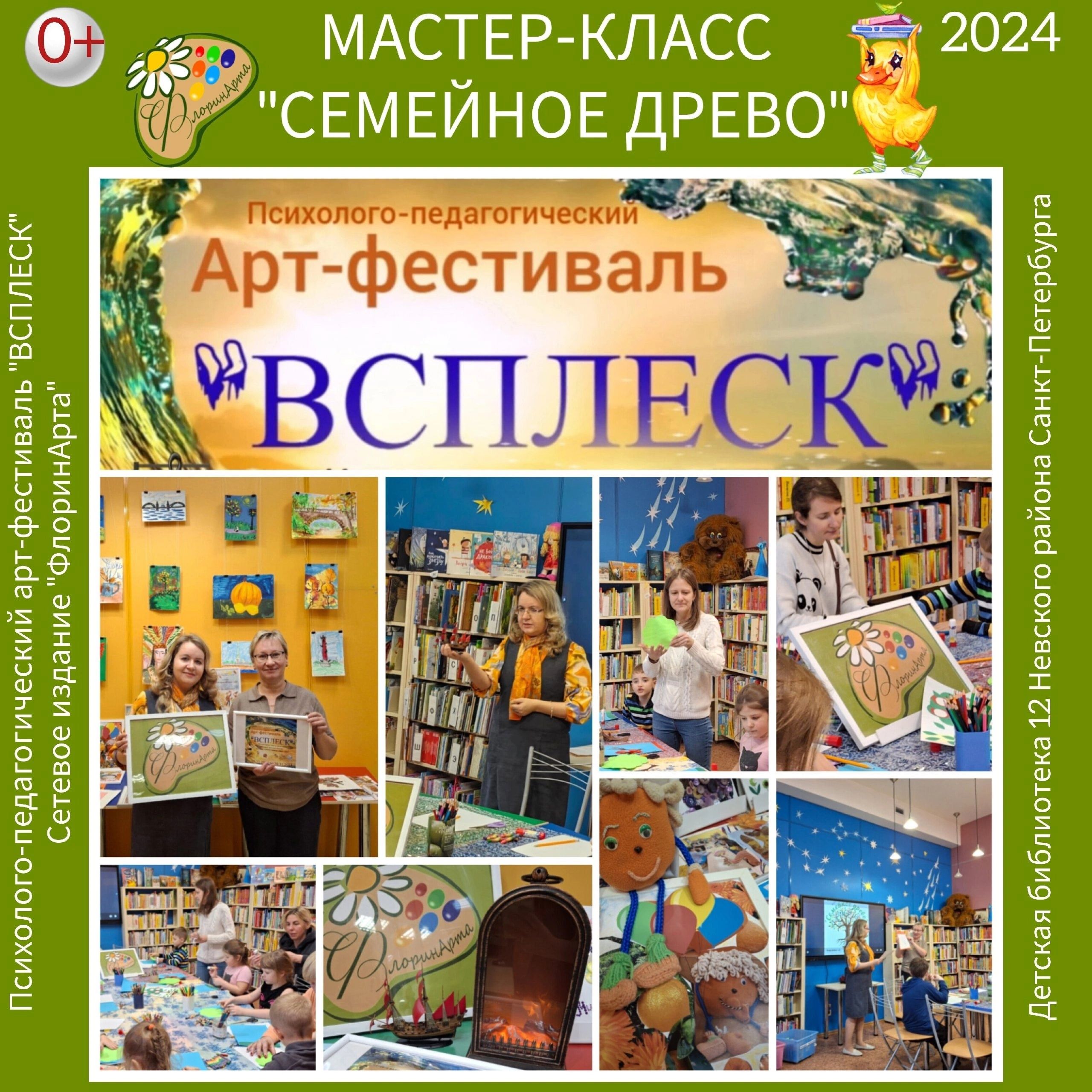 В рамках психолого-педагогического арт-фестиваля «ВСПЛЕСК» и Всероссийского проекта «Моя семья» в детской библиотеке №12 Невского района Санкт-Петербург по адресу Октябрьская набережная 100, к.1 состоялся мастер-класс для детей и взрослых «Древо семьи».