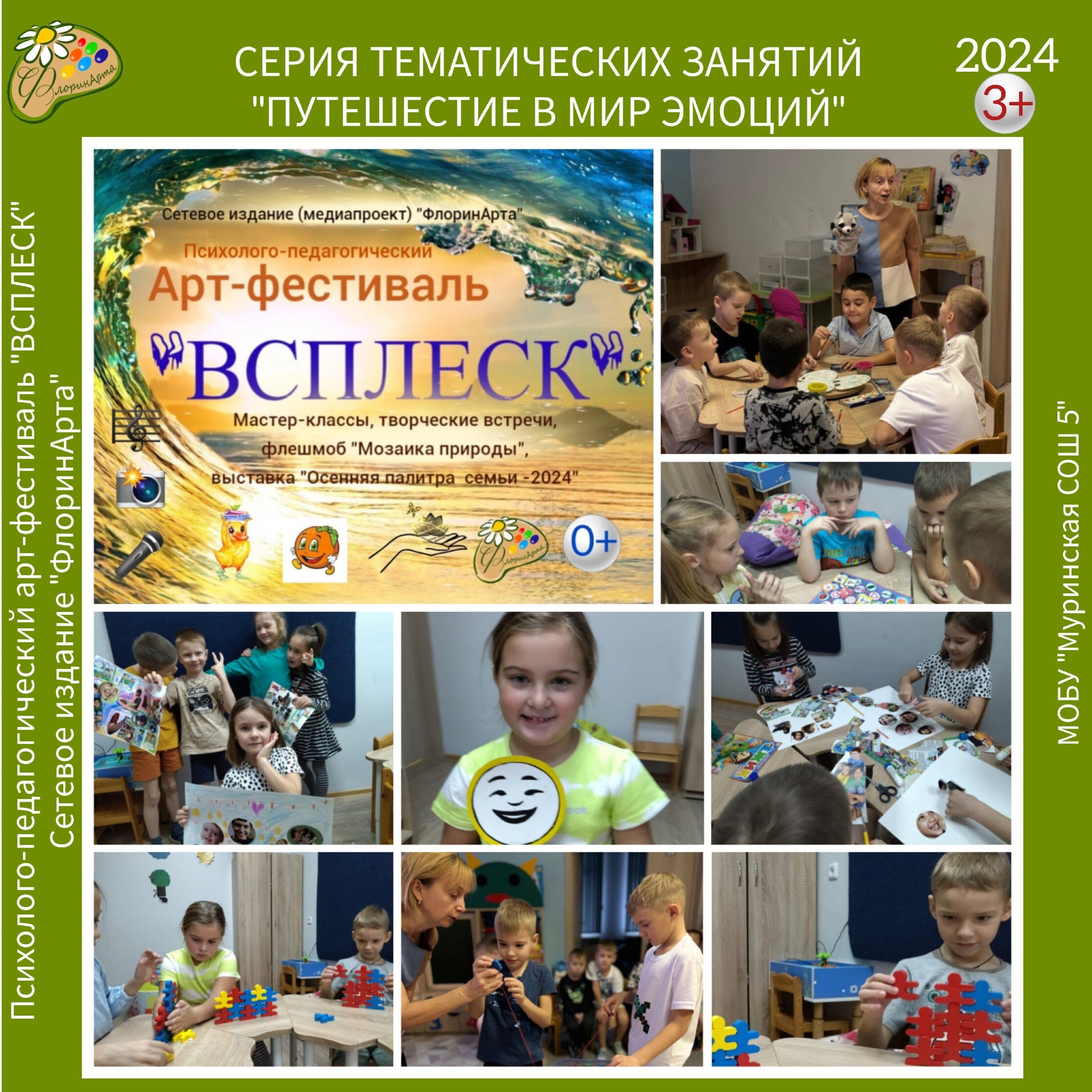 С 20 по 23 ноября 2024 года в МОБУ «Муринская СОШ № 5» в рамках психолого-педагогического арт-фестиваля «ВСПЛЕСК» и Недели психологии прошла серия тематических занятий «Путешествие в мир эмоций».