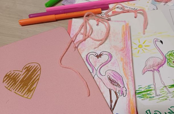 На нём ребята вместе с педагогами вспомнили об одной из красивейших птиц - розовом фламинго, создали её образы в смешанных техниках (аппликация, рисование на световом песочном столе), а также смогли "полетать" с помощью волшебного розового пера.